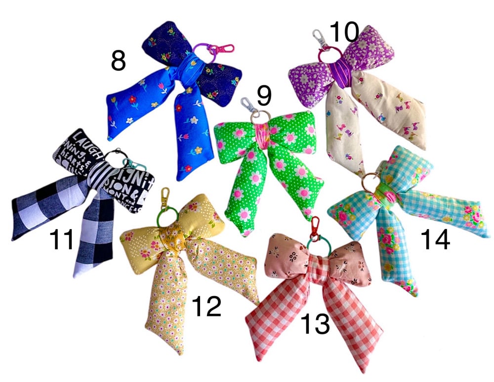 Darling clip on bow plushie…each one is unique and ready to adorn your purse or whatever you need a little cute!