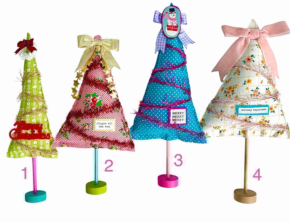 Hello holiday 2025🎄Each tree is unique and one of a kind, ready to adorn your home with holiday joy…the charm & cheer is hard to capture in a photo! Made with a variety of fabrics, ribbons, trinkets and more🎄Each tree measures between 10-15 inches - choose your favorite from the "numbered tree" menu🎄