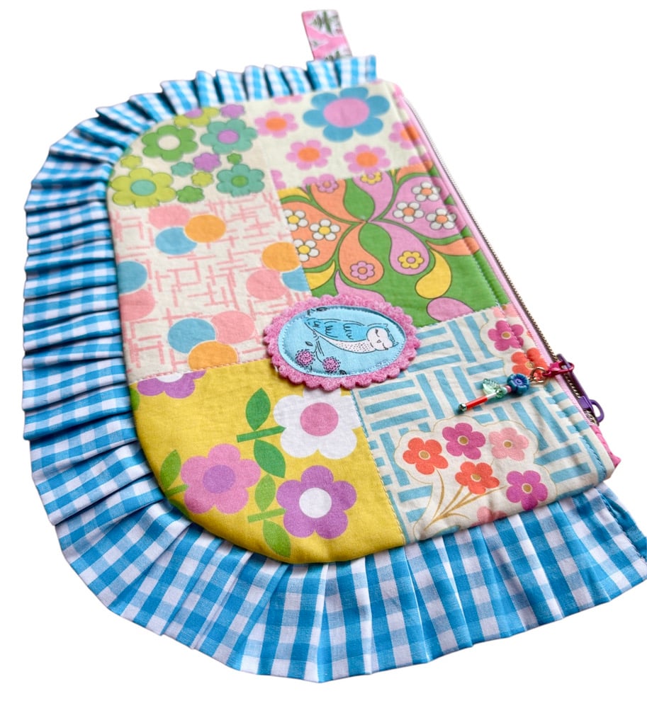 Carry something cute and one-of-a-kind💕this pouch is made with sweet patchy fabric and with a layer of handmade ruffles and a fun zipper pull💕don’t forget the sweet owl!