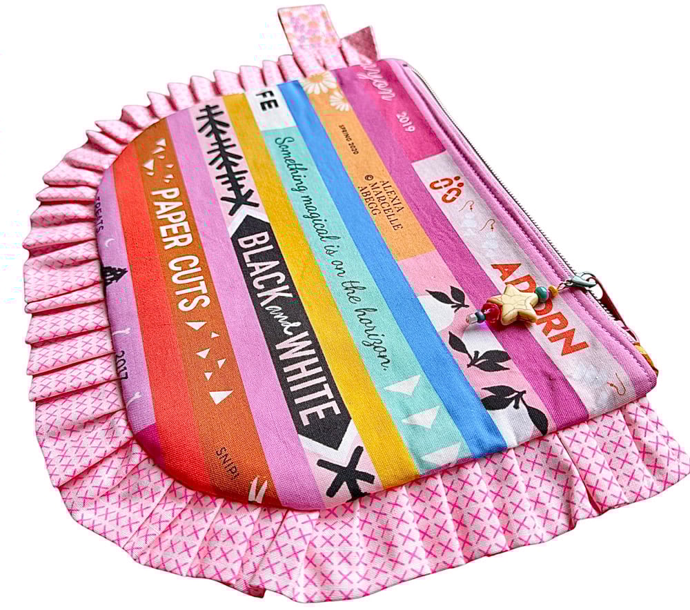 Carry something cute and one-of-a-kindđź’•this pouch is made with ruby star selvedge fabrics with a layer of handmade ruffles and a fun zipper pullđź’•